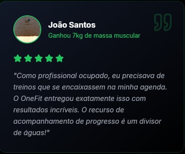"Nota: Os resultados podem variar de pessoa para pessoa com base na dedicação, biotipo e consistência. Estes são casos reais de usuários dedicados ao protocolo OneFit Quest, mas não garantem resultados idênticos."